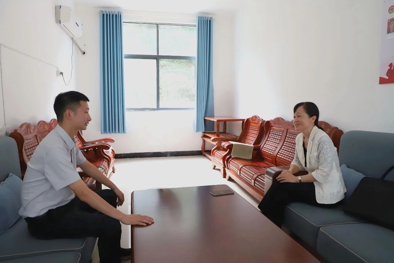 隨后,廖艷莉與駐村第一書記和工作隊(duì)員開展政治談話,深入交流駐村工作中的思想動(dòng)態(tài)、工作進(jìn)展與實(shí)踐困惑,并對(duì)駐村工作隊(duì)取得成效及工作思路表示肯定,作出駐村幫扶工作要求。