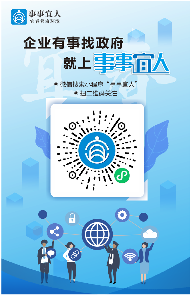 我們致力于:聆聽企業(yè)心聲,解決企業(yè)困難,優(yōu)化宜春營(yíng)商環(huán)境。企業(yè)有任何問題,請(qǐng)通過微信小程序“事事宜人”告訴我們,我們將竭誠(chéng)為您服務(wù)。